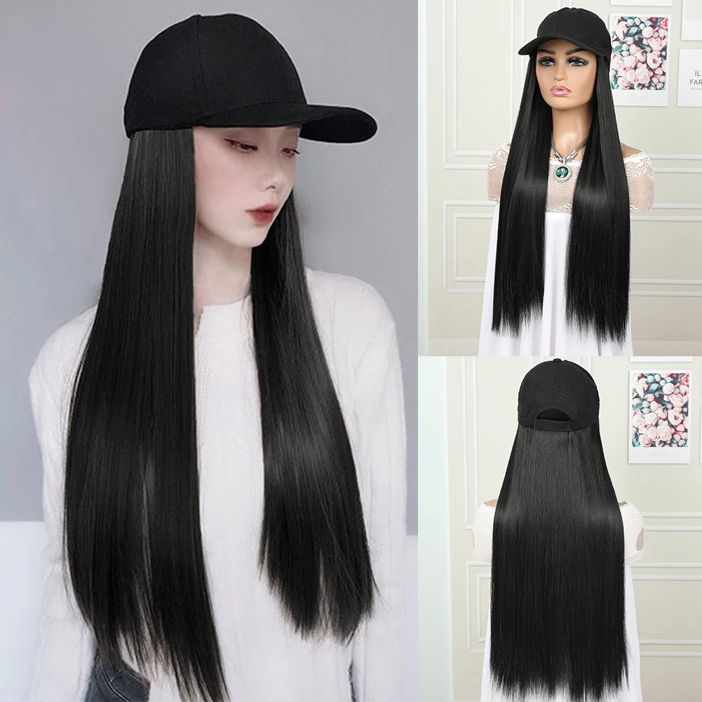 hat wig straight hair Synthetic Long Straight Baseball Cap with Hair Extensions 24 Inch High Quality fiber Adjustable Wig Hat for Women Girls