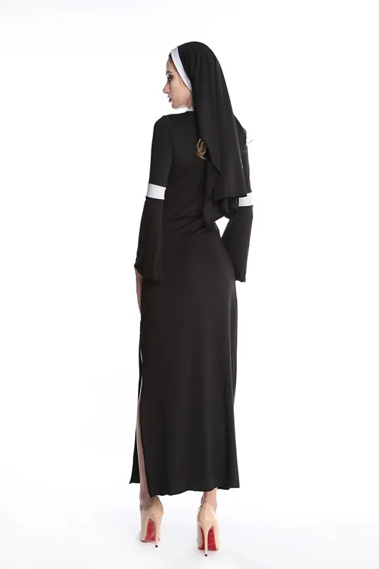 Umorden Halloween Costumes for Women The Nun Costume Sexy High Split Fantasia Adulto Cosplay Clothing Dress Headscarf Cross