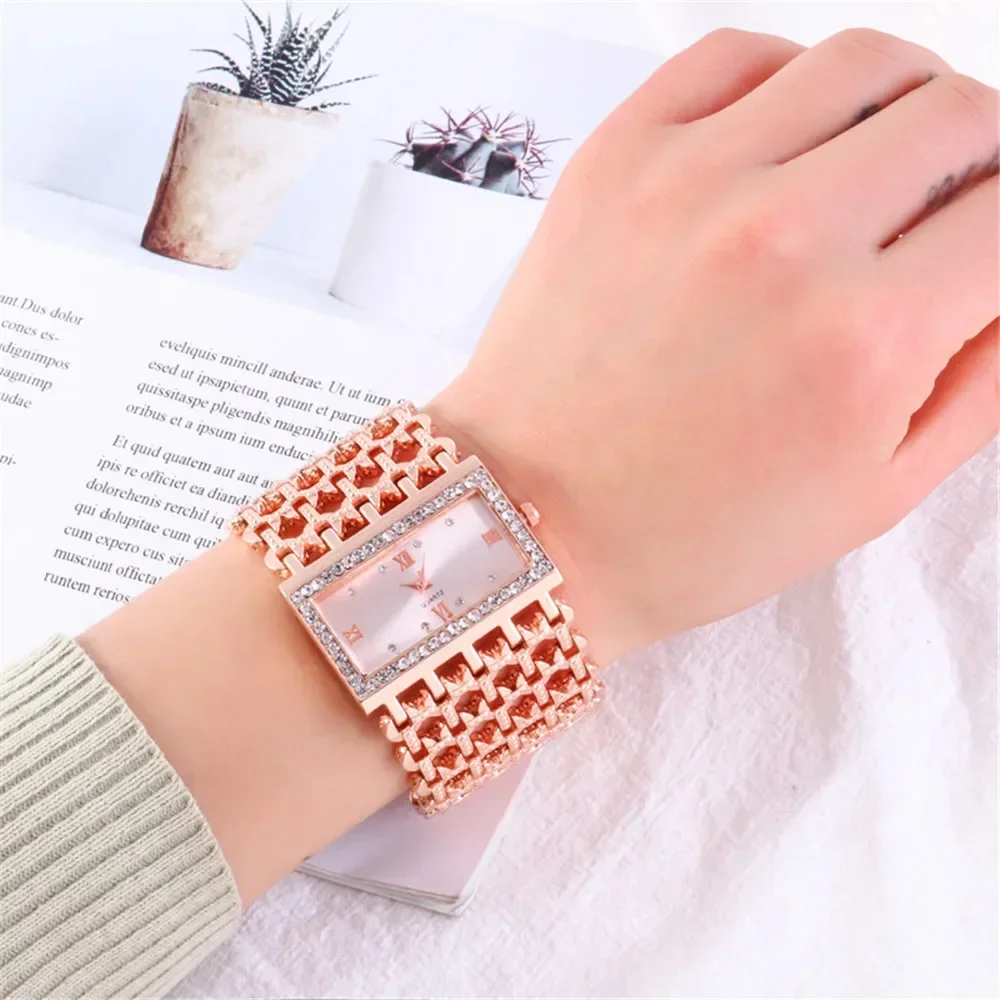 UTHAI W29 New Watch For Women Fashion Light luxury Square Diamond Quartz Watches Clock Lady's Gold Stainless Steel Bracelet