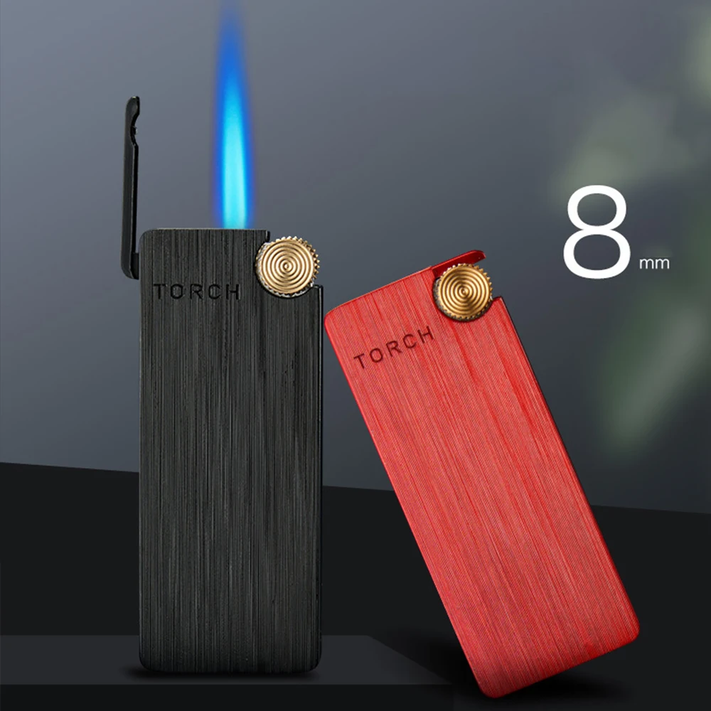 Windproof Torch Grinding Wheel Lighter Cigar Butane Lighter Spray Gun Portable Lighter Kitchen Outdoor Blue Flame