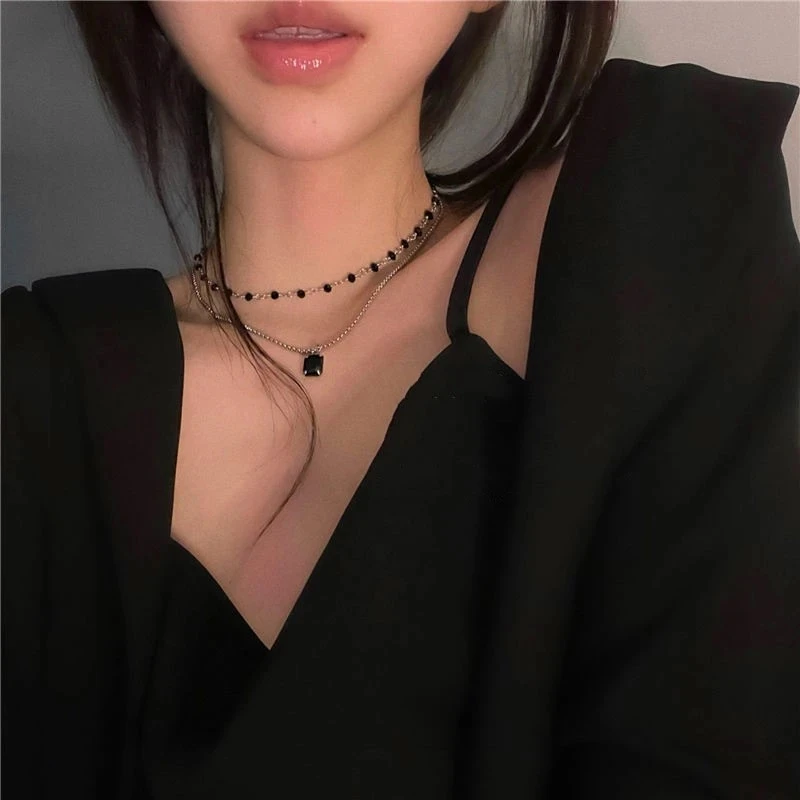 Women Choker Necklace Double Layer Beads Necklace Gift for Friend Silver Color Geometric Necklace Wholesale Collar Jewelry
