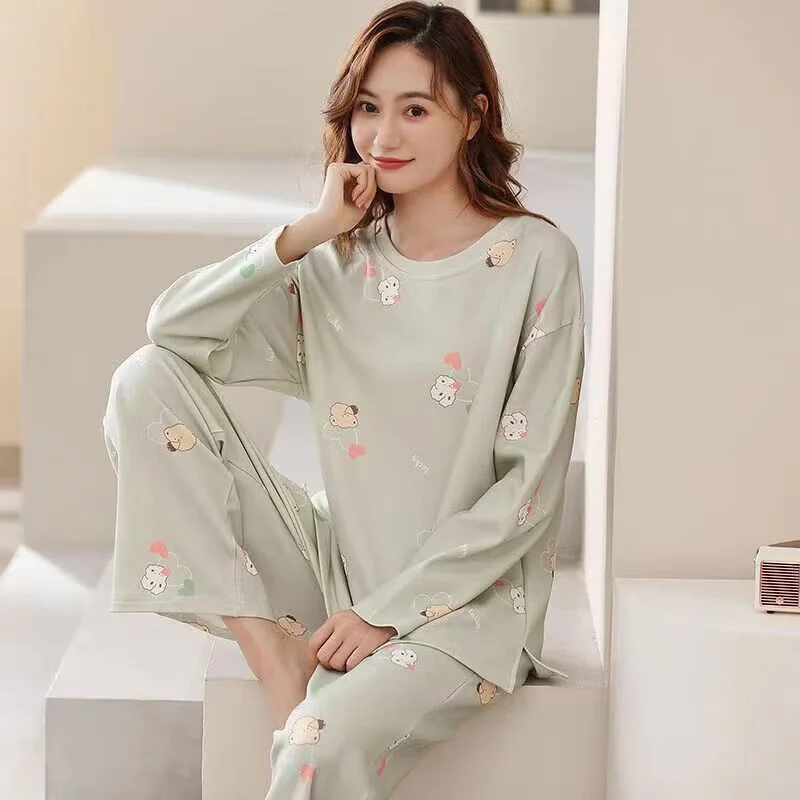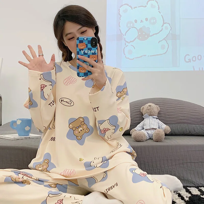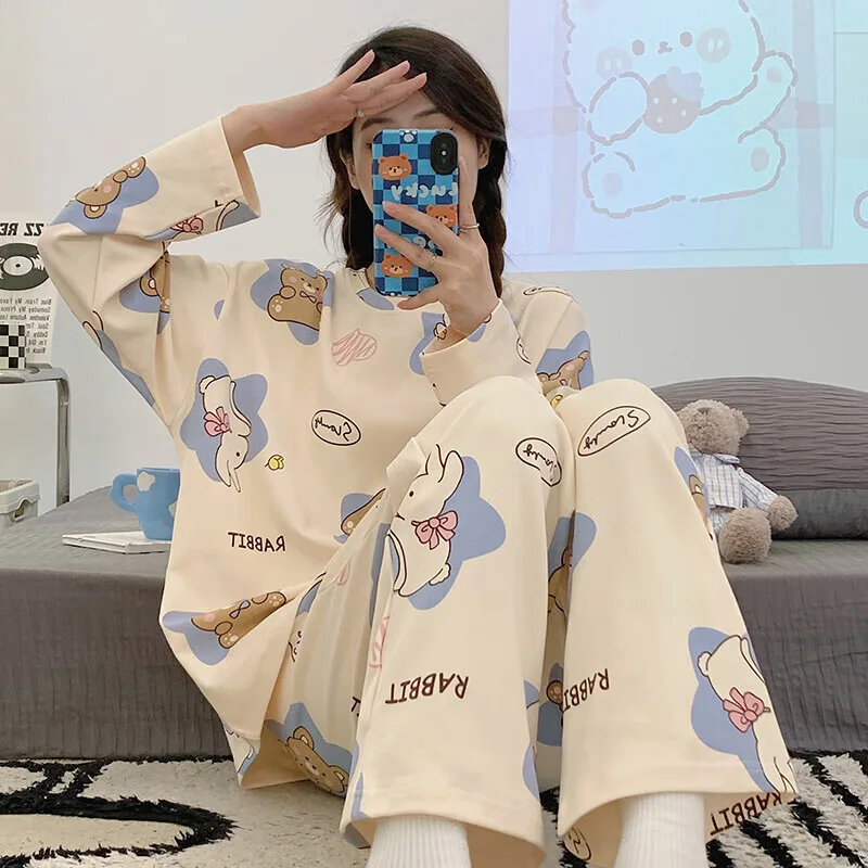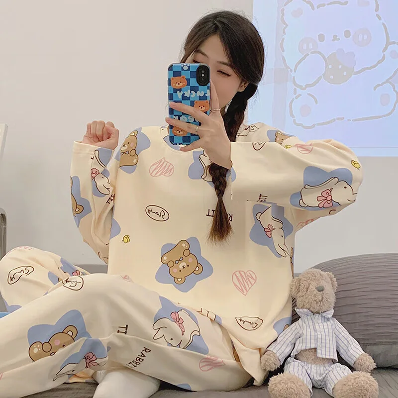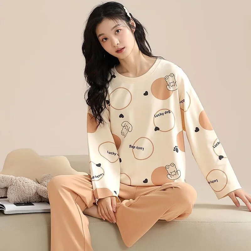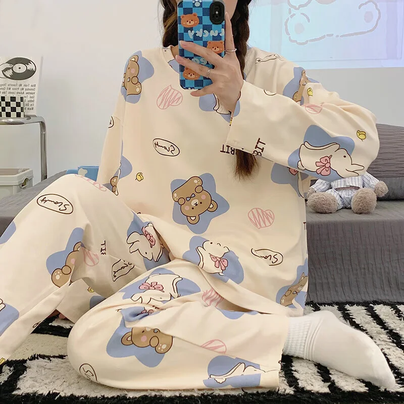 Women's Pajamas Two-Piece Casual Cute Comfortable Sleepwear Homewear Set Tops and Trousers Nightwear Lounge Wear Autumn Winter