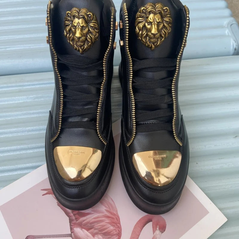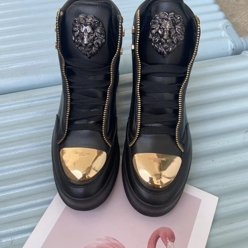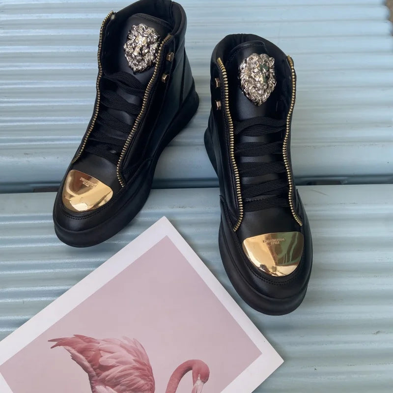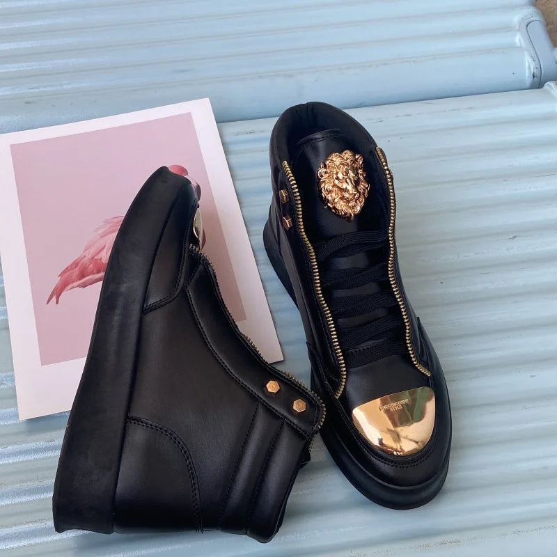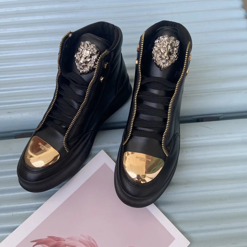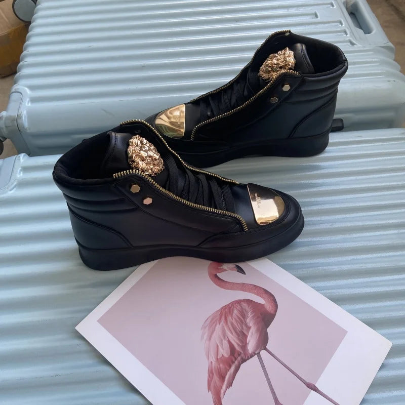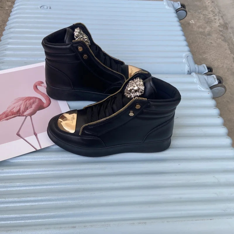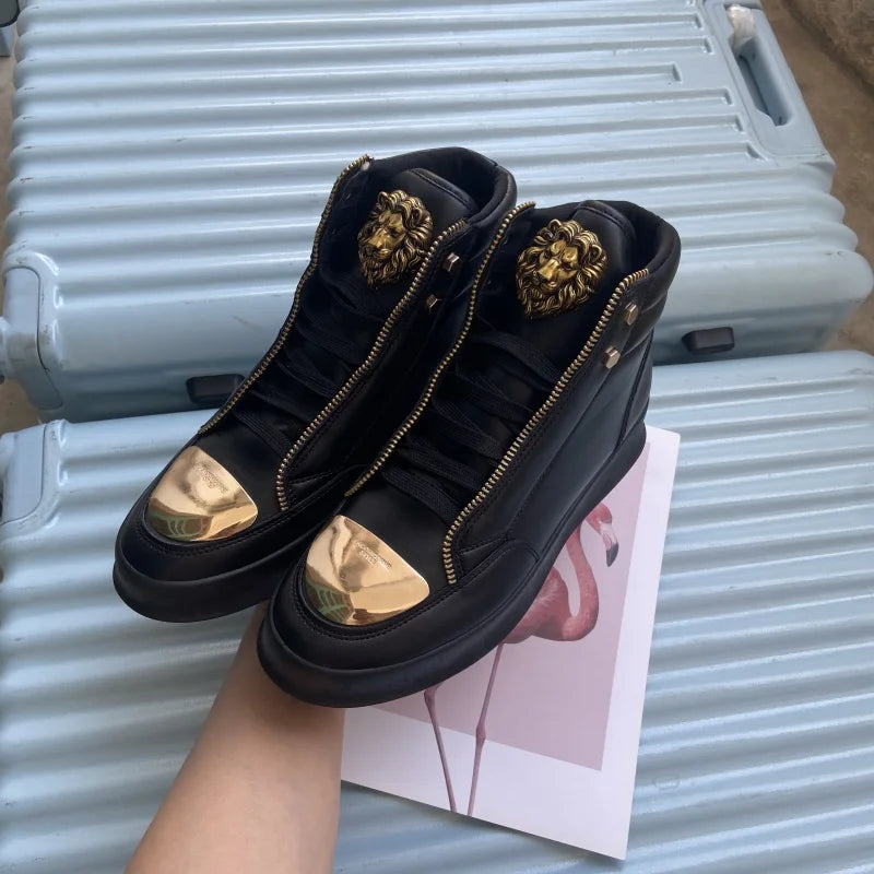 Men's High-Top Designer Sneakers - Casual Athletic Shoes with Zip Detail
